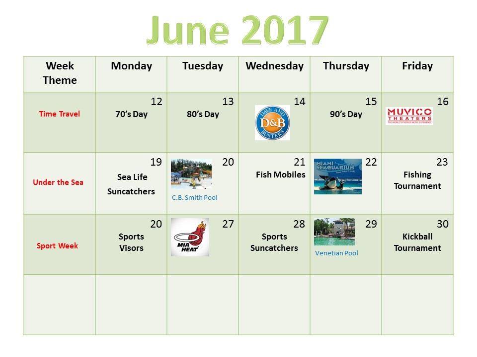 Summer Camp Calendar June 2017